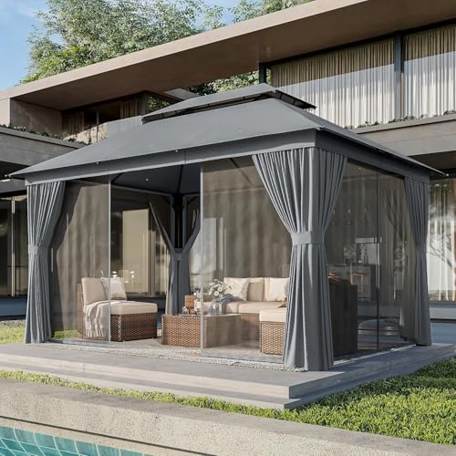 Pawilon 3x3,6 m z metalową ramą tworzy azyl na tarasach i w ogrodach. Podwójny dach poprawia przewiew i wytrzymałość. Siatki przeciw owadom i ekrany prywatności zwiększają wygodę. Nadaje się na plenerowe spotkania czy odpoczynek, solidna forma zapewnia długowieczność. Montaż jest łatwy, wnosi współczesny i praktyczny akcent.